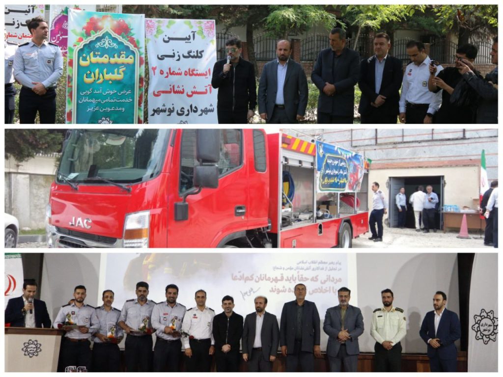 آیین تجلیل آتش نشانان و ایثارگران، رونمایی از خودرو جدید آتشنشانی با اعتبار ۹۰ میلیارد ریال و کلنگ زنی ایستگاه شماره دو آتشنشانی شهرداری نوشهر با حضور دکتر عادل خزائی پول شهردار نوشهر، دکتر جهانشاهی فرماندار و دیگر مسئولین شهرستان نوشهر برگزار شد.
